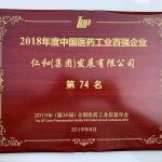 仁和集團榮獲2018年度中國醫藥工業百強企業第74名