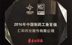 仁和集團榮獲2016年度中國醫藥工業百強企業