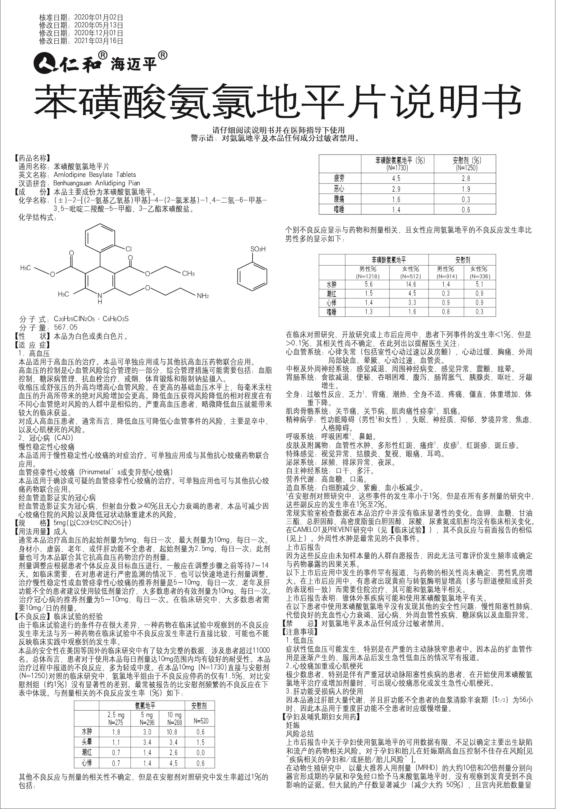 苯磺酸氨氯地平片
