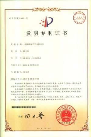 一種濕毒清片的分析方法發明專利證書 發布時間: 2019年12月18日 11:52:17 閱讀量: 11,790 下一篇:一種清火膠囊內容物的水分含量的分析方法發明專利證書上一篇:一種小兒風熱清顆粒的分析方法發明專利證書